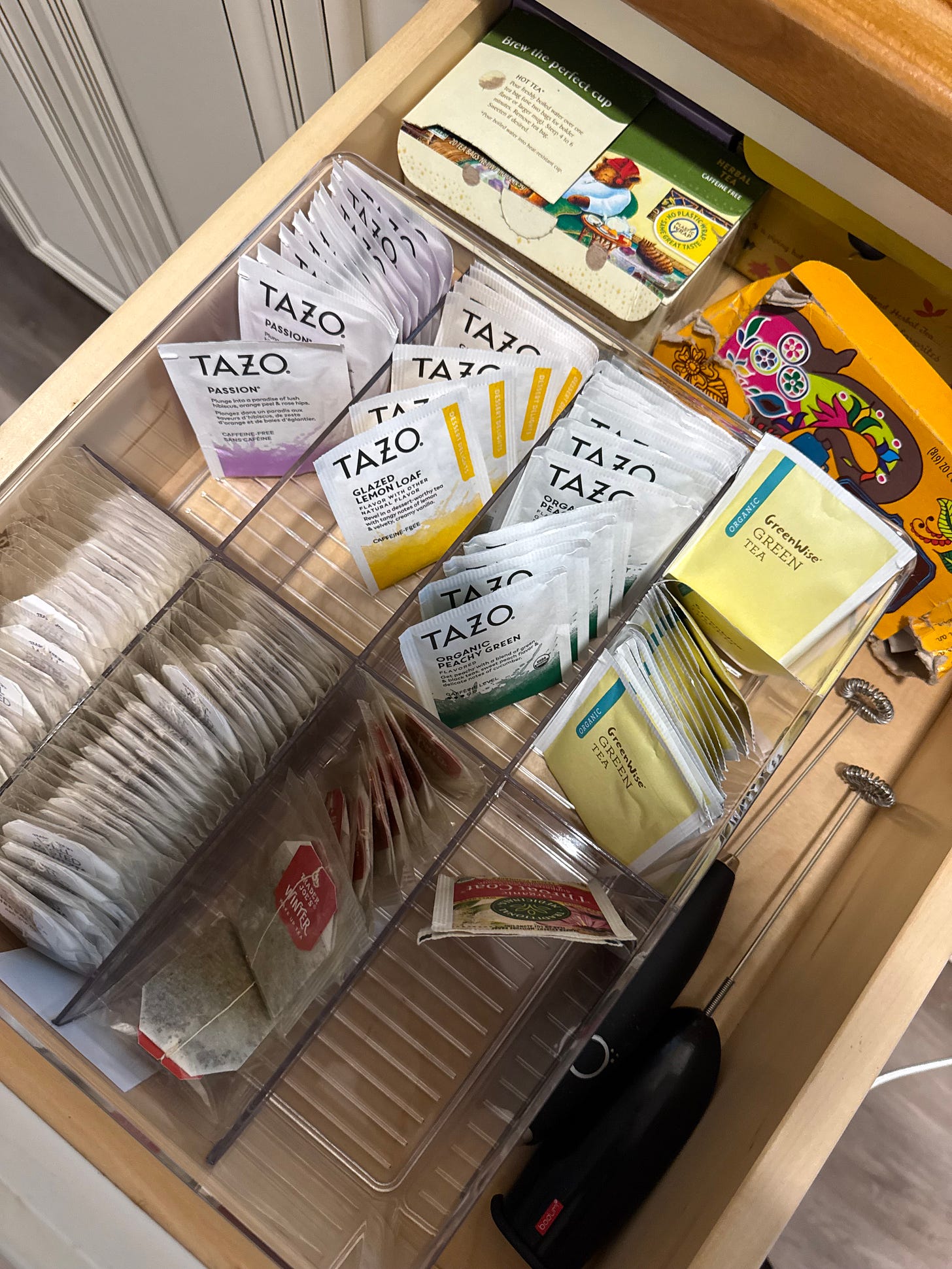 Organizing my tea drawer. Within the last two years, I added tea into my nightly wind down routine, which is funny as someone who has always had a strong distaste for what I would call grass water. I’ve collected quite a few different types of tea over the last few years and was looking for away to organize it in the new house. I had ordered this tea organizer a few weeks ago, and it finally came. I’m happy that all my tea now has a new home.