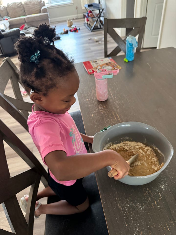 Making pumpkin muffins. The last time I went to Trader Joe’s, I made sure to pick up two boxes of pumpkin bread. One, I made a loaf with, and the other, I made some pumpkin chocolate chip muffins for the kids. These kind of boxes always makes baking with littles super easy and fun!